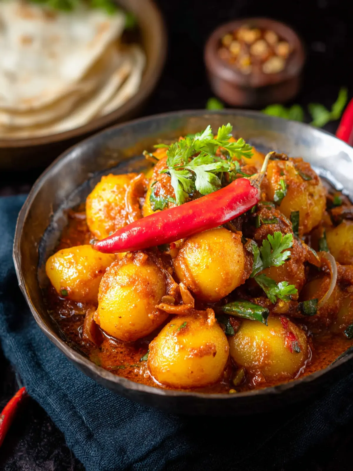 A delicious and spicy curry made with baby potatoes, yogurt, and a mix of aromatic spices.