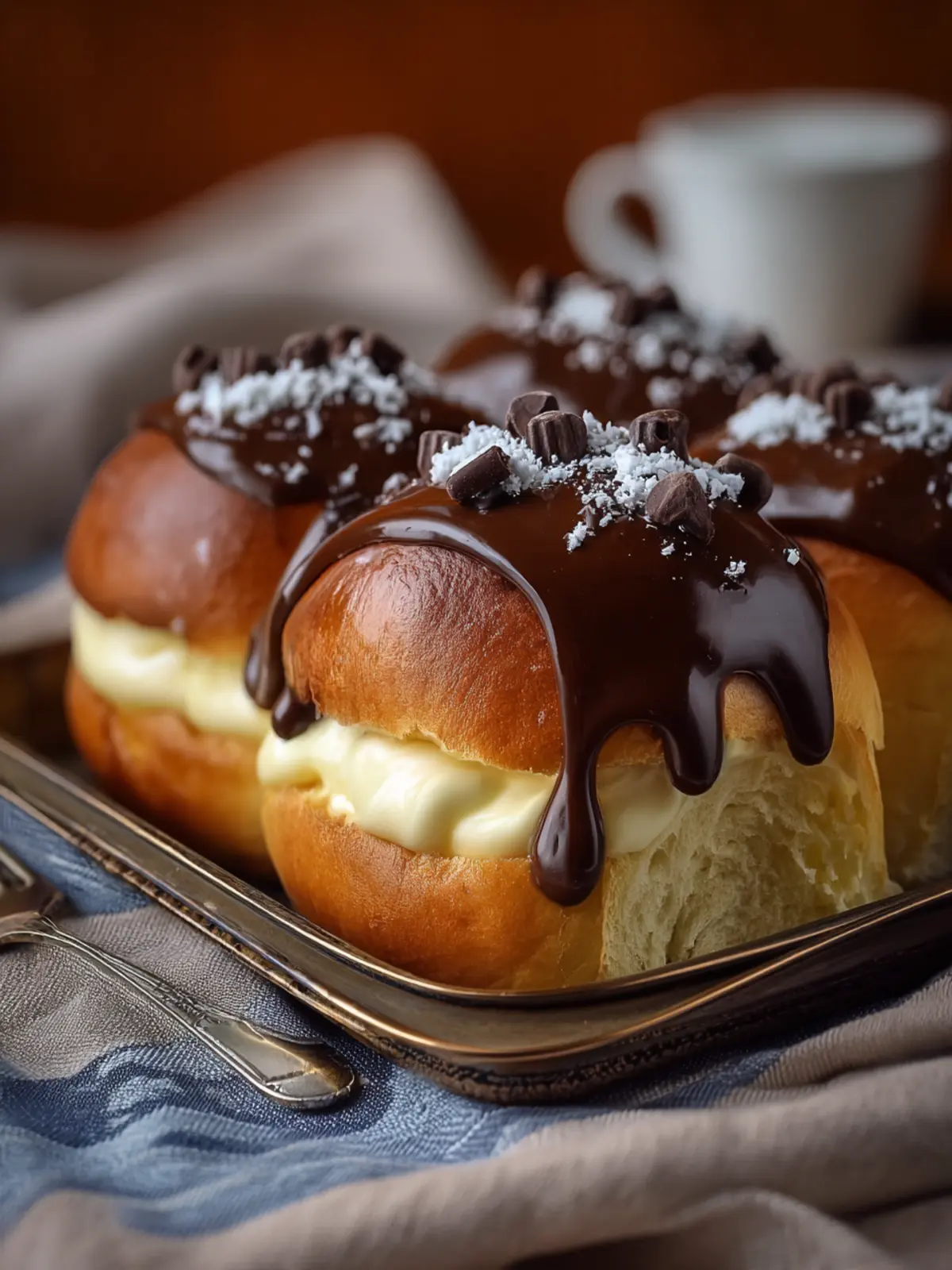 The magic of Boston Cream Hawaiian Rolls lies in their perfect balance of flavors and textures. Each roll is soft and pillowy—characteristics that make Hawaiian bread so beloved. Inside, a creamy custard filling adds a luxurious richness, while the chocolate ganache topping elegantly enhances the experience. This combination of warm and cool, sweet and rich is simply irresistible.