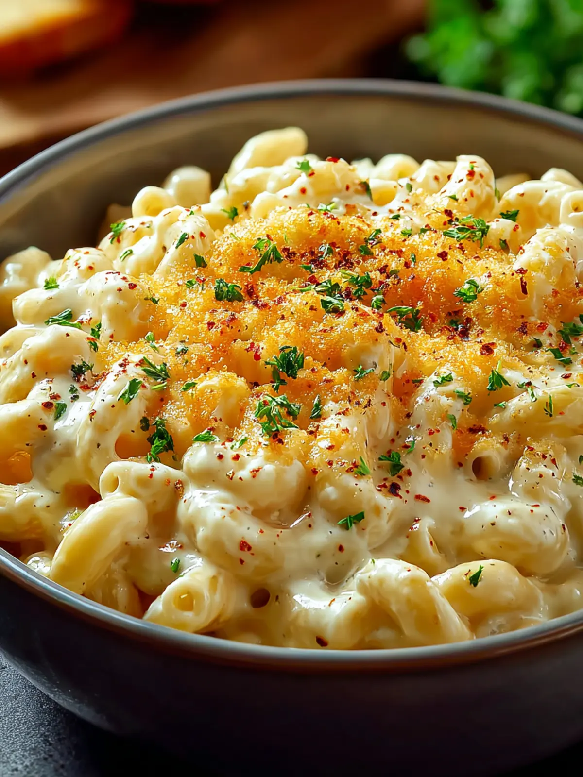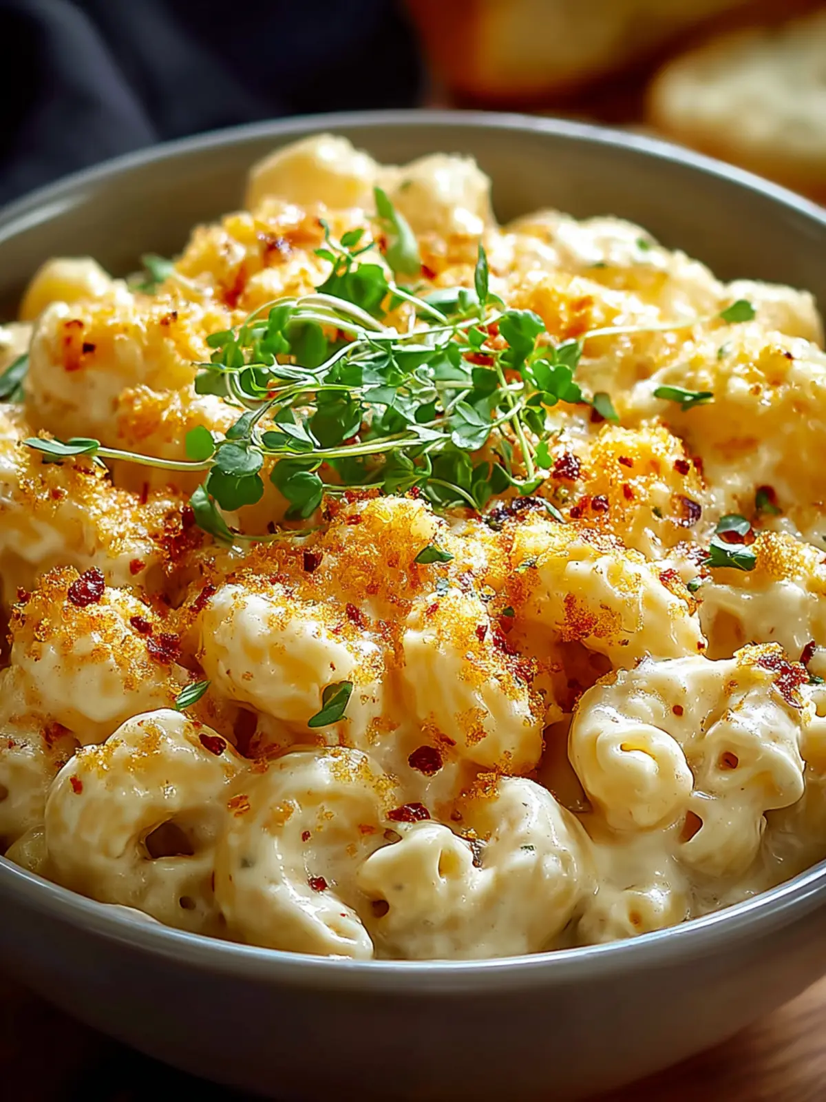 - Garnish: Top with crispy bacon or seasoned breadcrumbs for added crunch.