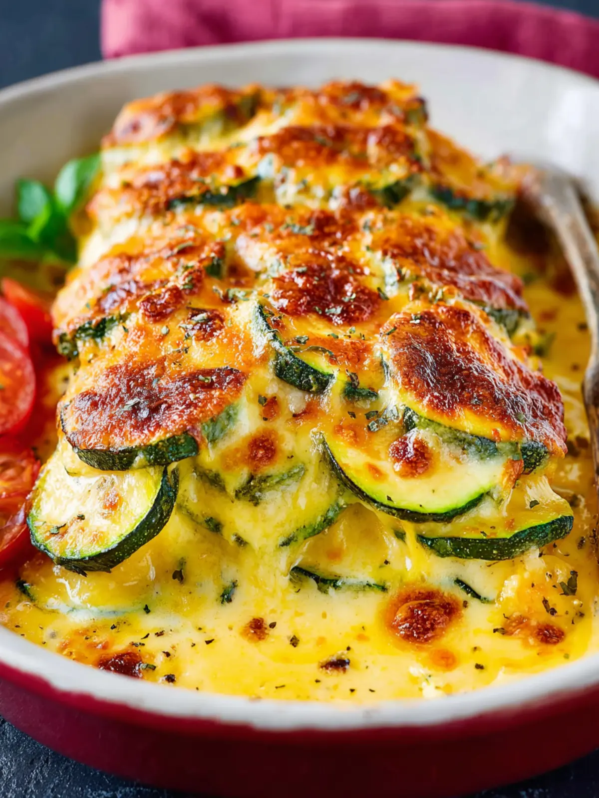 A delicious cheesy zucchini dish that is easy to prepare and perfect as a side or main course.