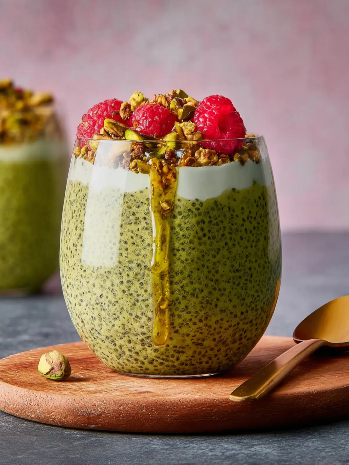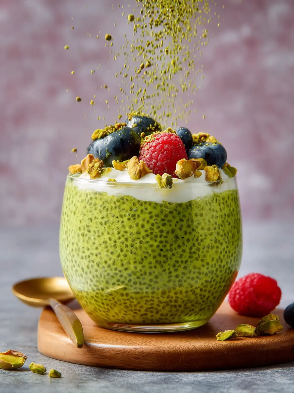 For those who can’t resist chocolate, swirl in a bit of cocoa powder to your chia mixture. This chocolatey addition pairs surprisingly well with the earthy matcha and rich pistachio, creating a dessert-like treat that feels indulgent yet healthy.