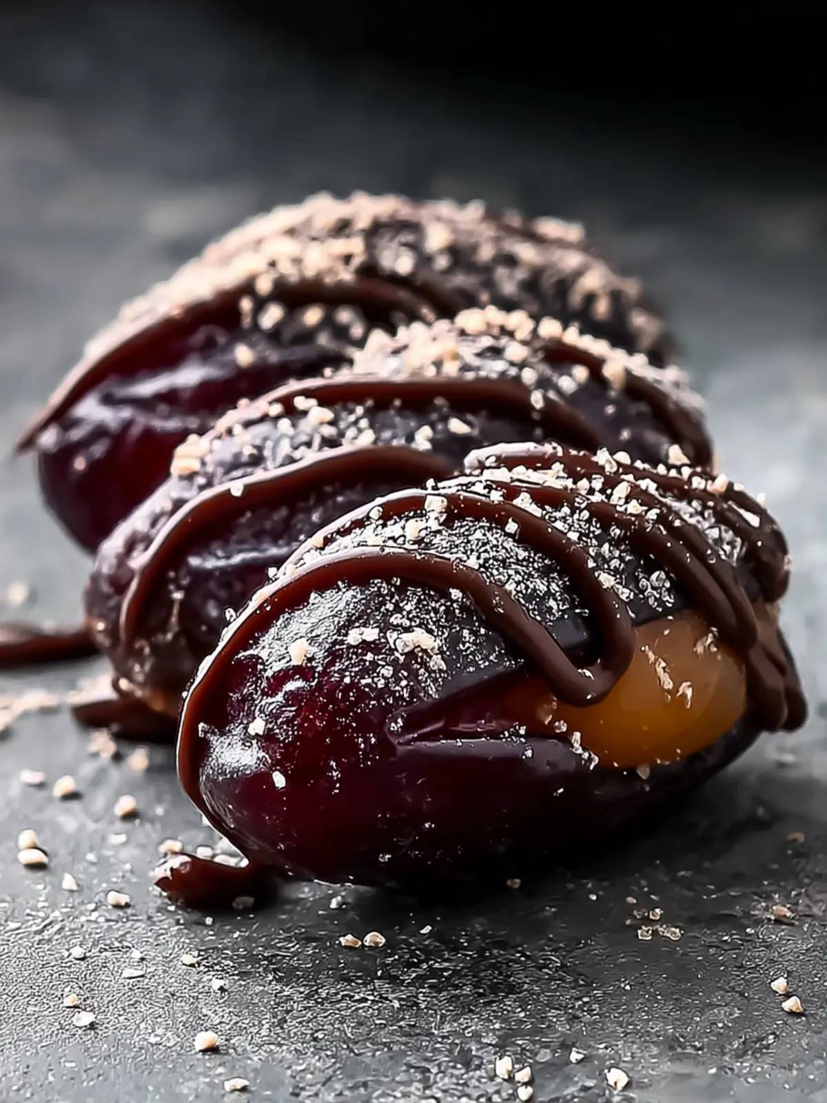 For a touch of elegance, sprinkle some crushed nuts or sea salt over top. This not only adds texture but creates a visually appealing presentation that makes your no-bake dark chocolate stuffed dates irresistible.