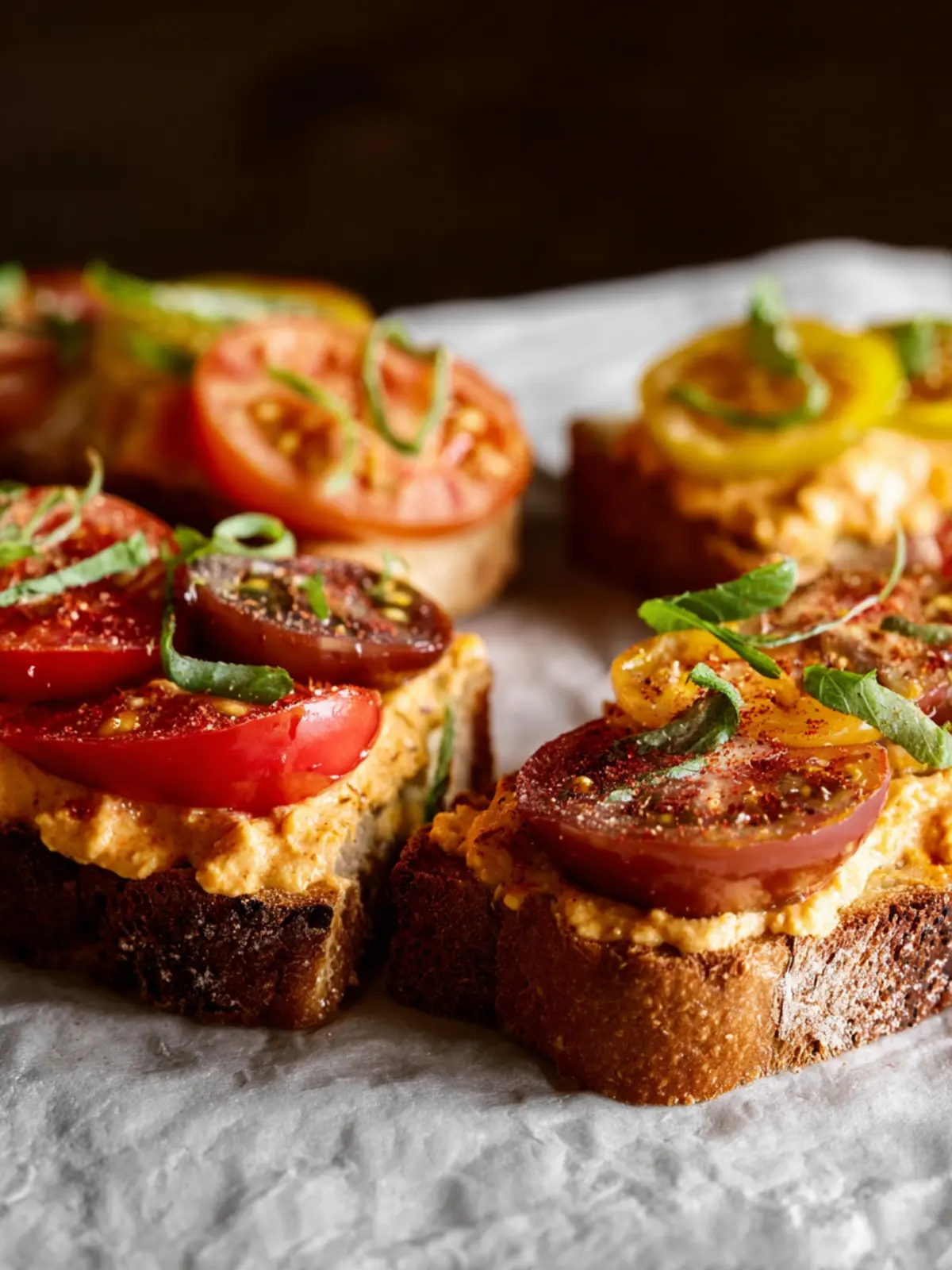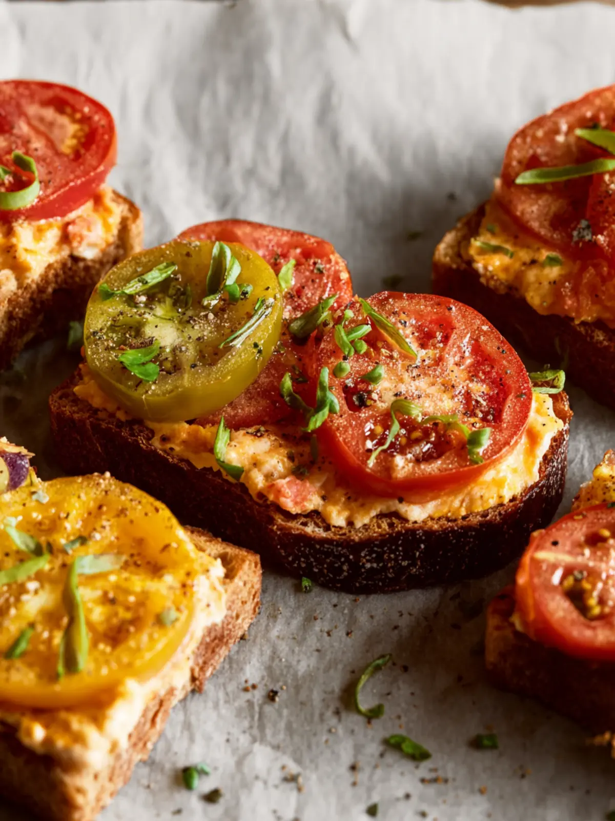 What makes pimento cheese toasts special is their versatility. They can easily transition from a casual afternoon snack to a chic appetizer for dinner parties. What sets them apart? It’s the homemade pimento cheese spread that sings with personality, blissfully enhanced by the sweetness of heirloom tomatoes. The cheese is crafted from sharp cheddar, creamy cream cheese, and zesty pimentos, all brought together with a little mayonnaise and spices. Pairing this with the colorful heirloom tomatoes elevates the dish and provides a wonderful visual aspect, making these toasts as delightful to the eyes as they are to the palate.