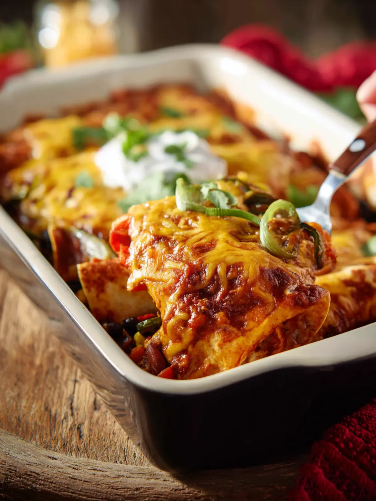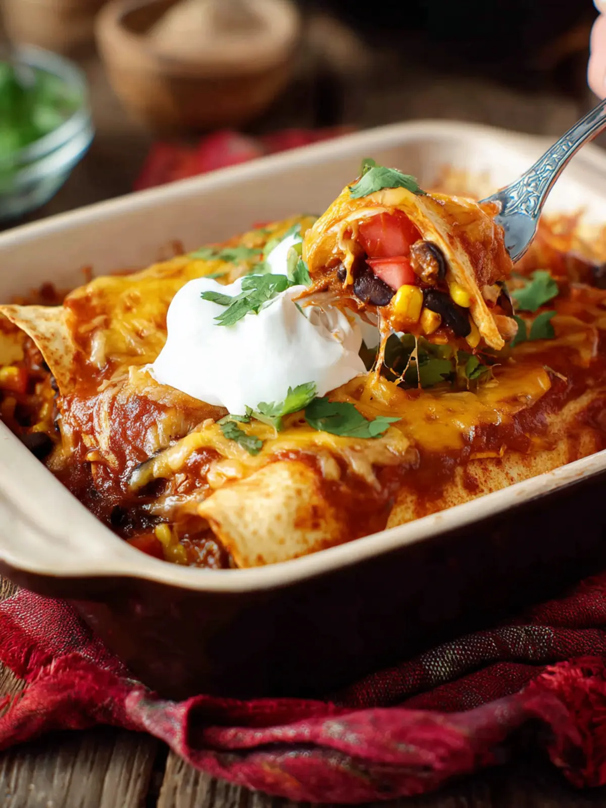 • Sauce: A tangy enchilada sauce ties everything together, enhancing the dish with its rich, slightly spicy flavor.