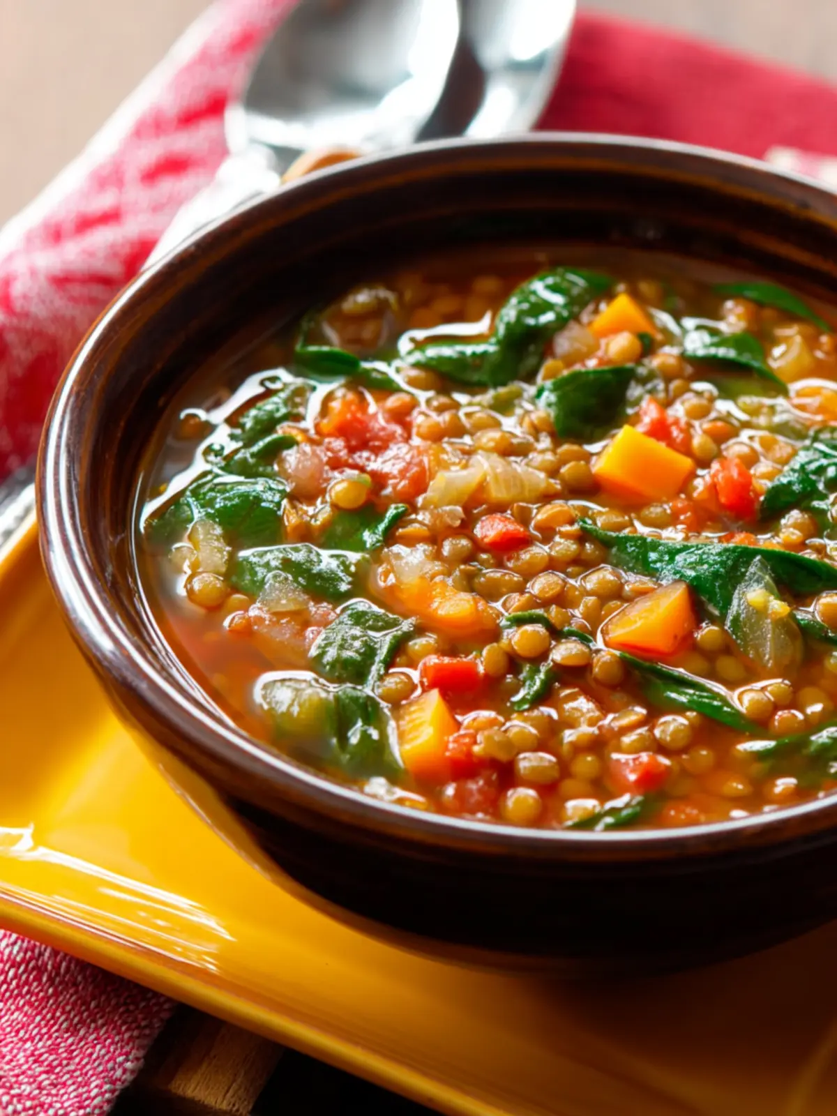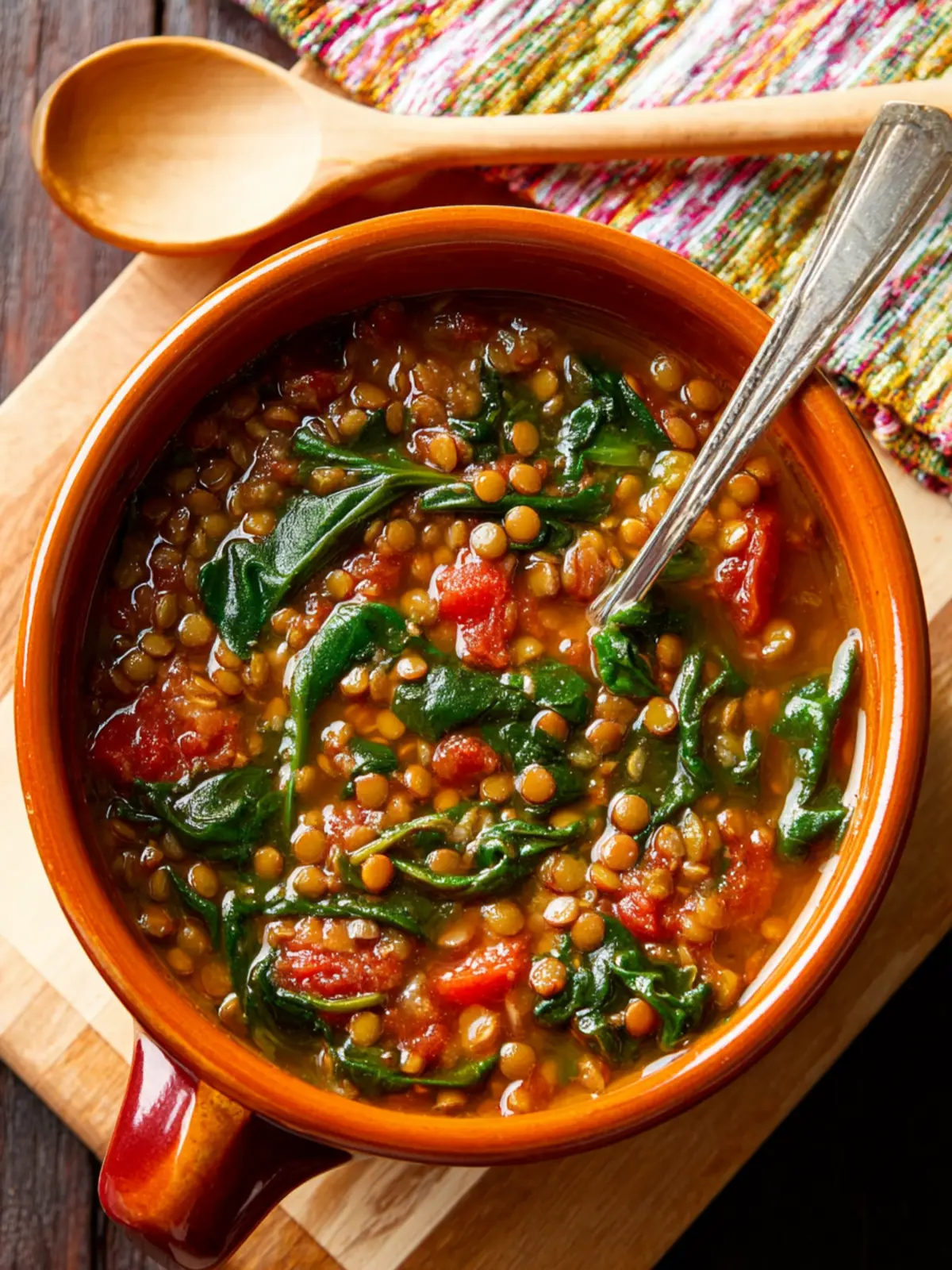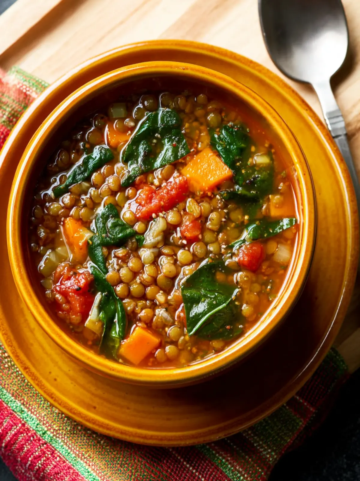 A hearty and nutritious lentil soup with spinach, perfect for a satisfying meal.