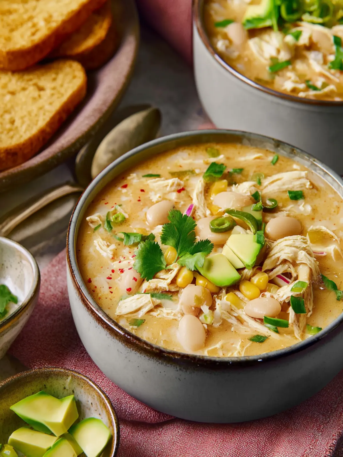 Toppings can truly elevate your white chicken chili. Consider: